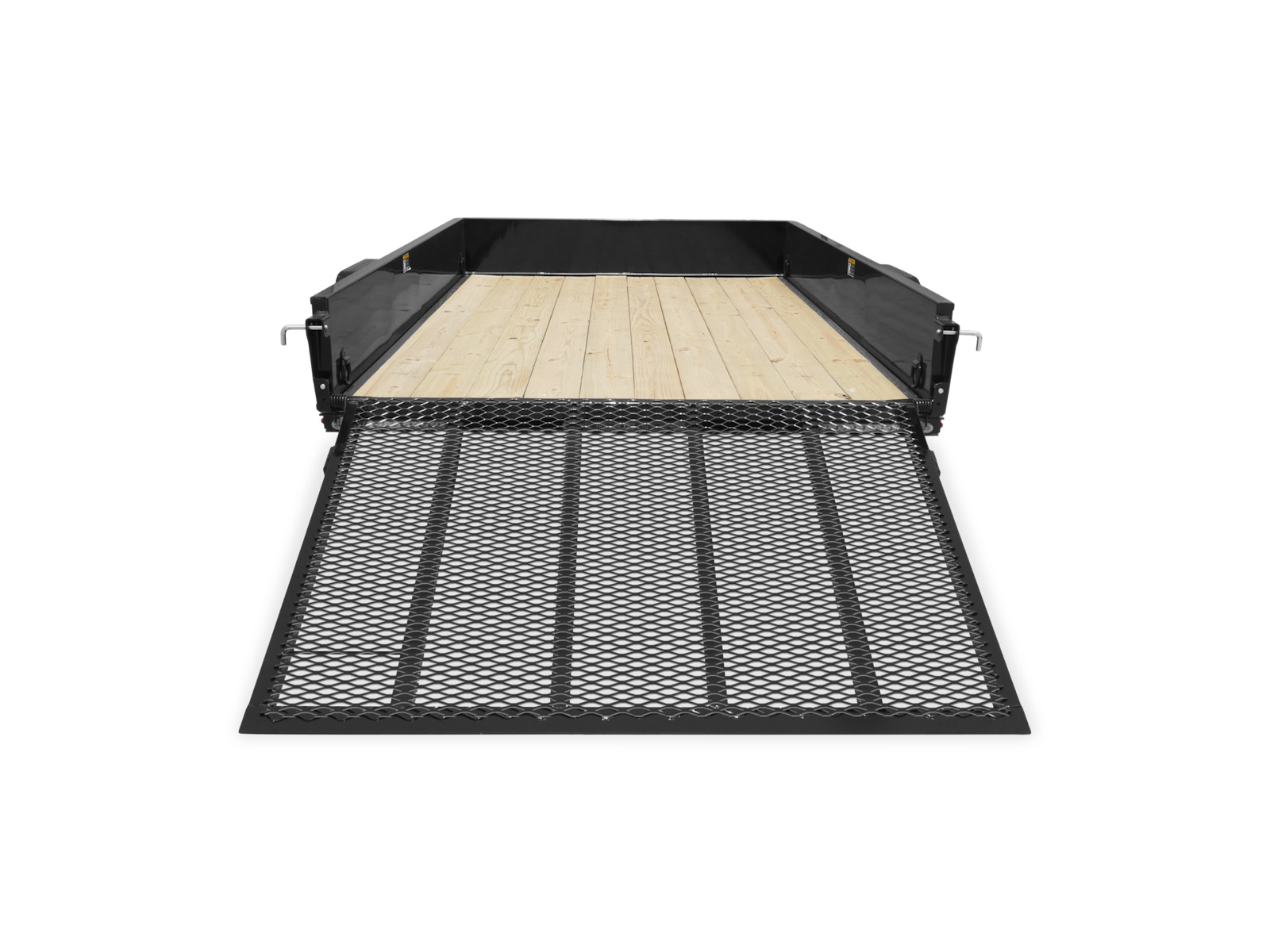 Secure loads confidently with welded D-rings placed for maximum flexibility and cargo control. - Fold-Flat Rear Ramp Gate – Easy Loading and Clean Storage