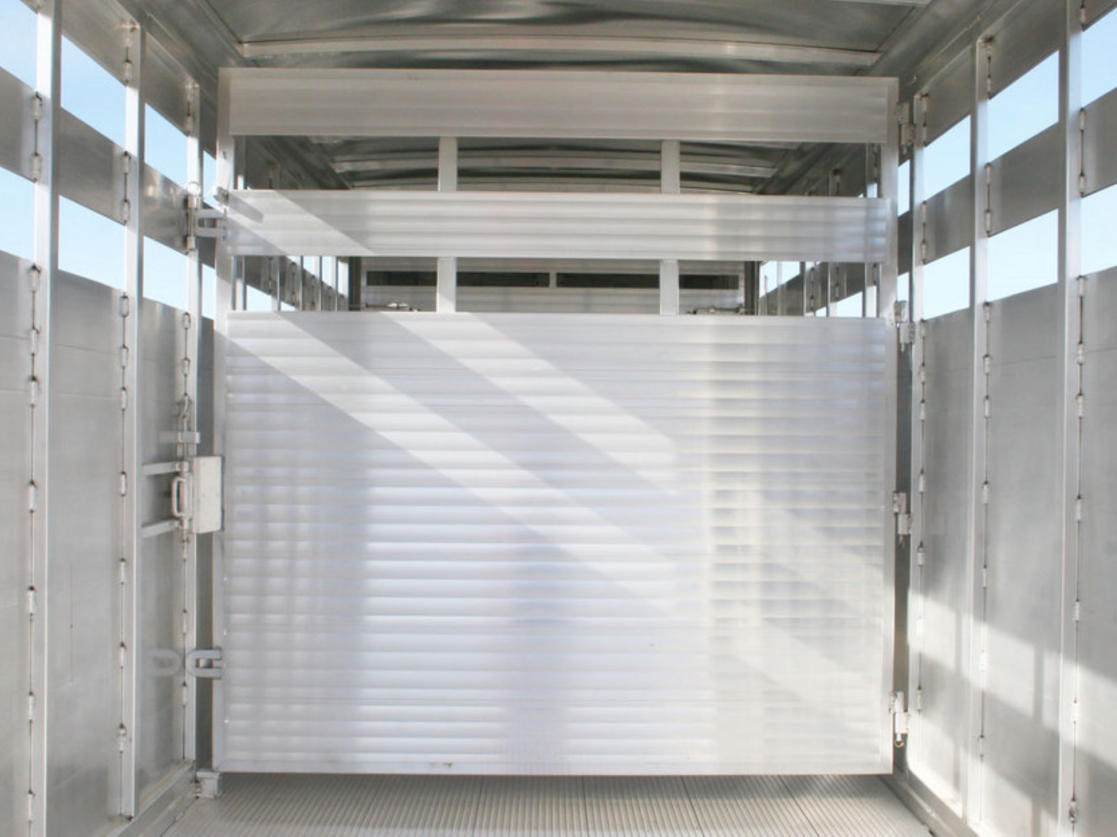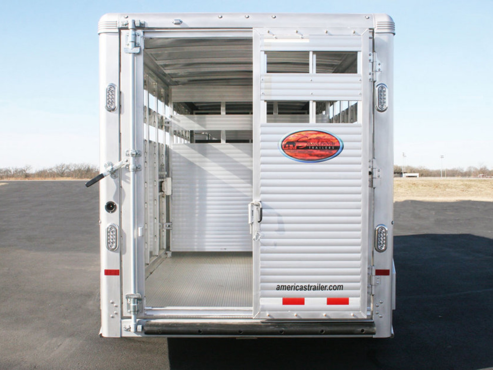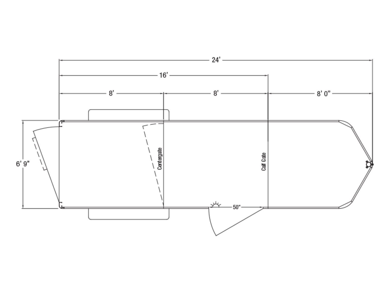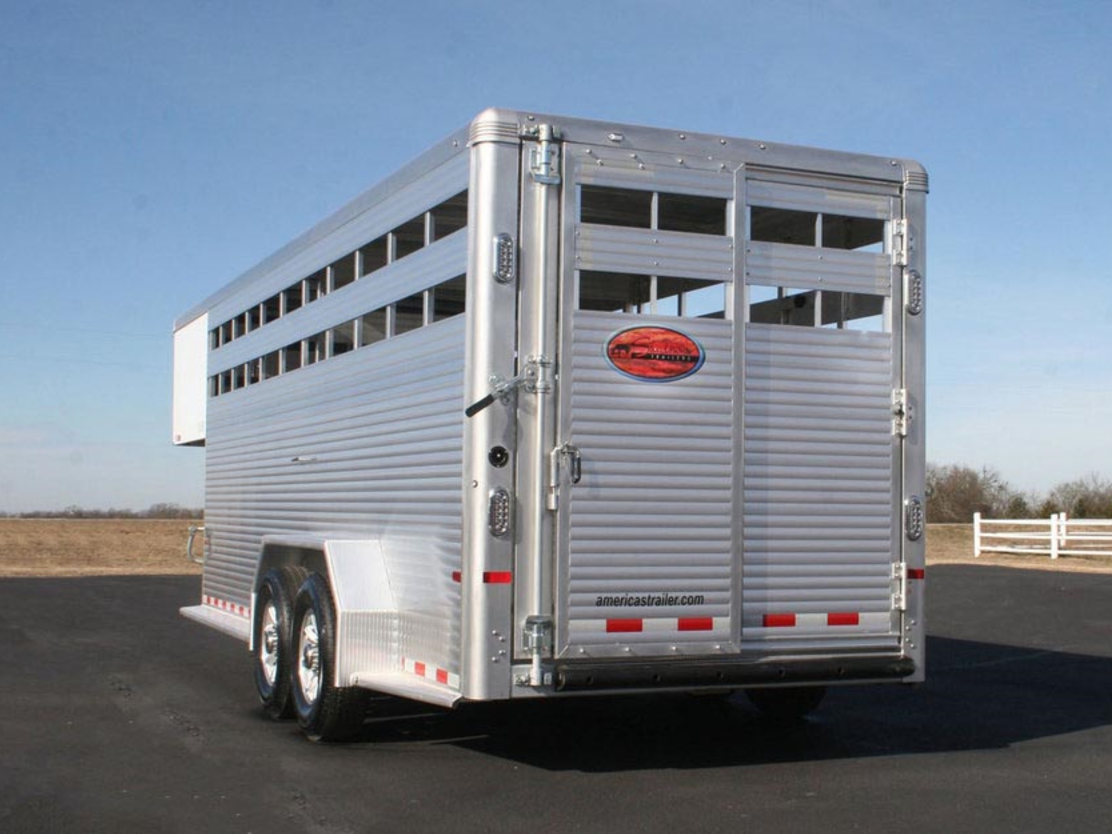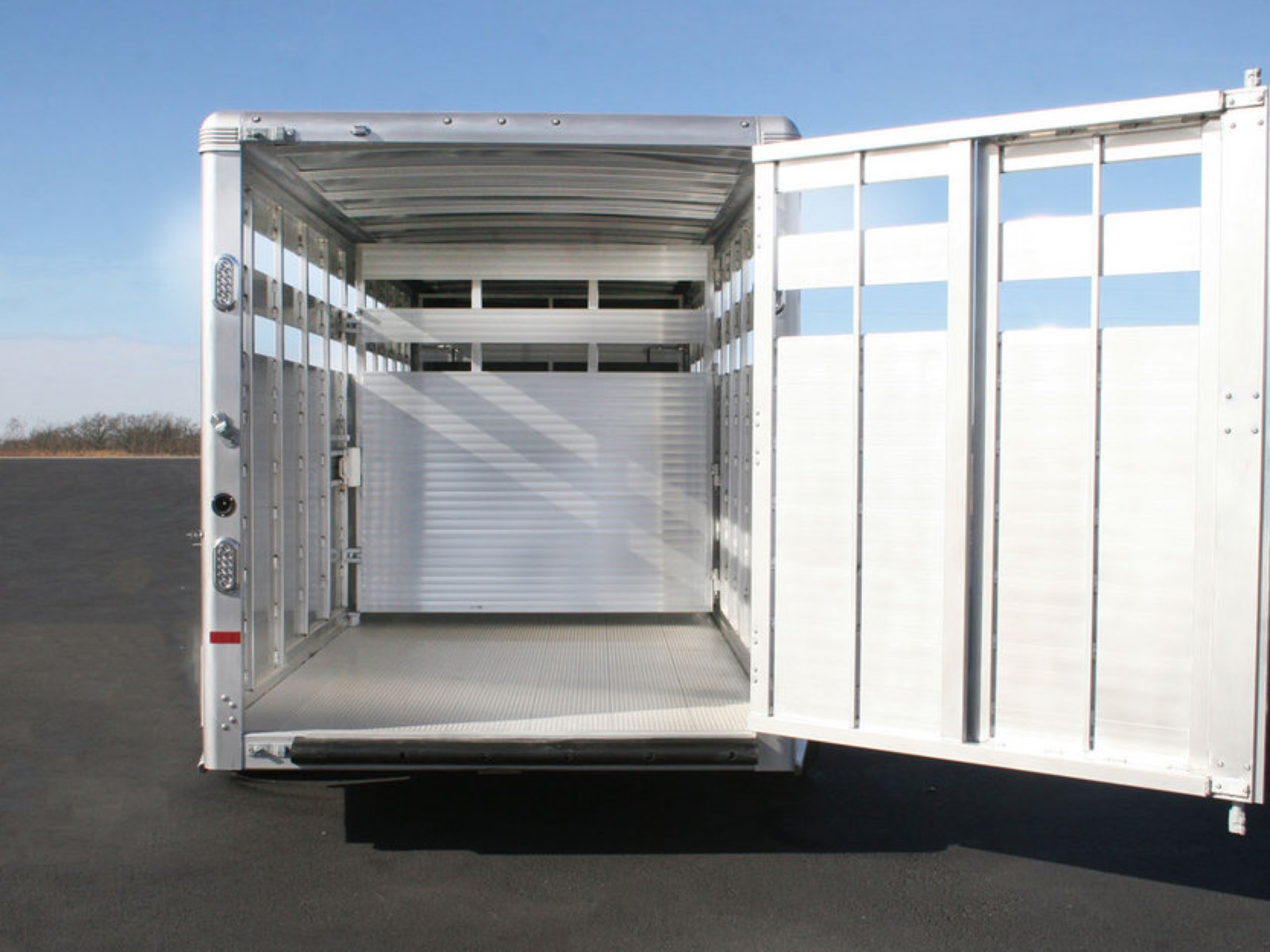Side Door: Side access door with full height aluminum cam latch | Rear Gate: Rear gate with sliding calf gate | Calf Gate: Drop down calf gate | Center Gate: Swinging center gate (2 on 24' model)