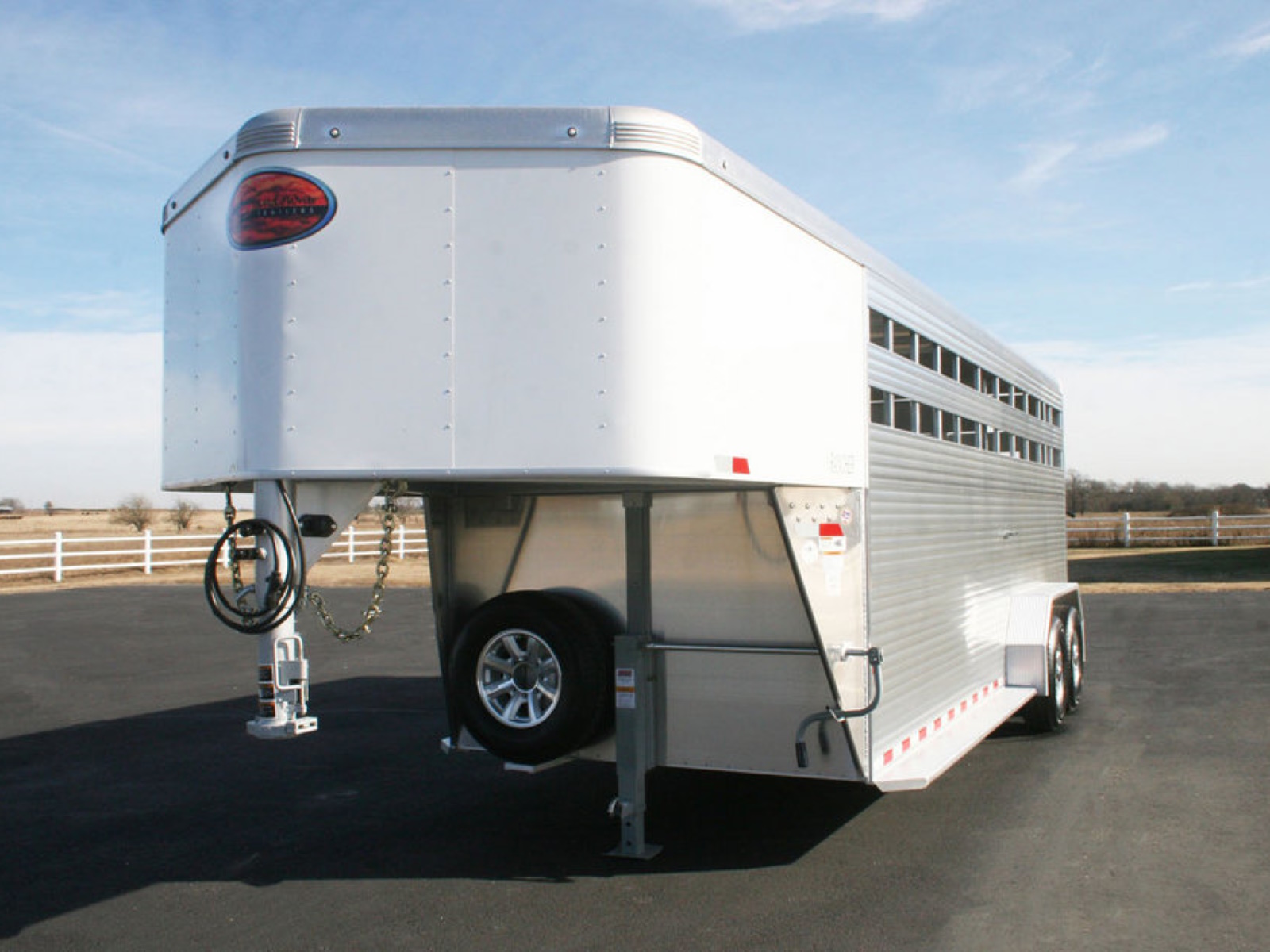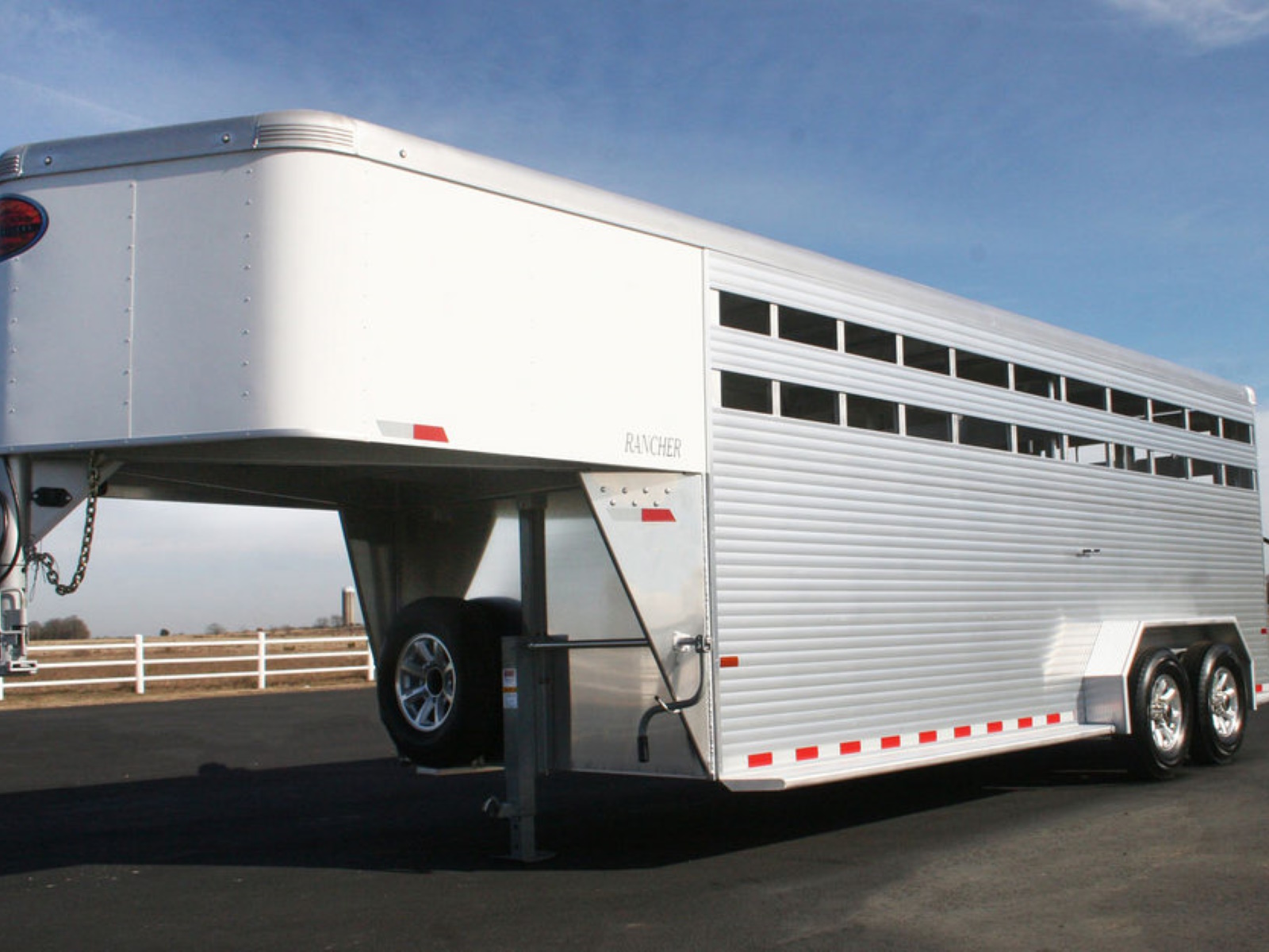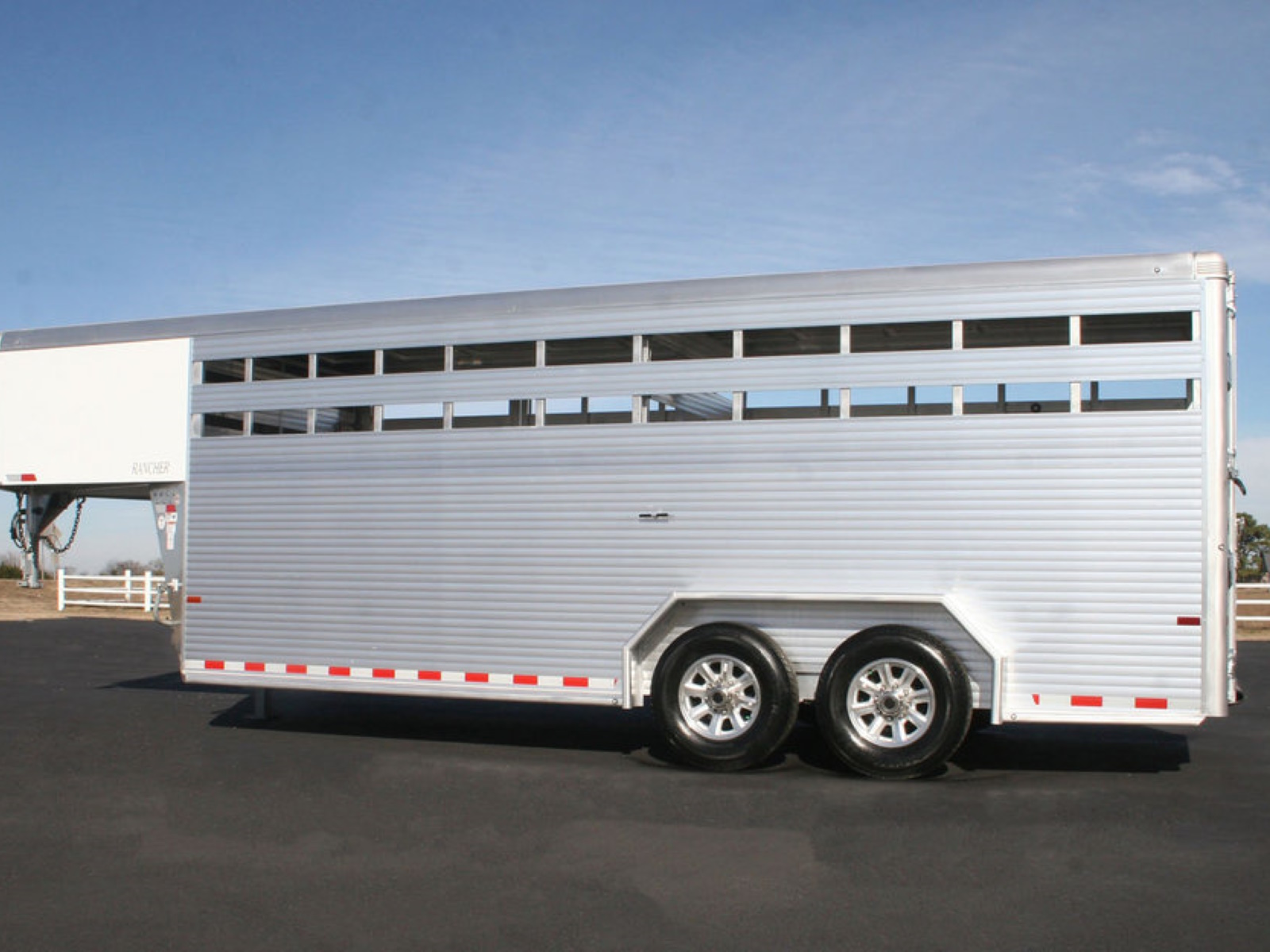 The Rancher is Sundowner’s all aluminum gooseneck stock trailer. All are standard 7’ tall and 6’9” wide. Standard equipment also includes a full swing rear gate with sliding calf gate, a center cut gate, a fold down calf gate in the nose compartment and a side access door with full height cam latch. The Rancher is built with tough, extruded side walls including 2 air gaps that are Plexiglas ready. The Rancher is built with the same quality and standards that people expect from a Sundowner trailer.